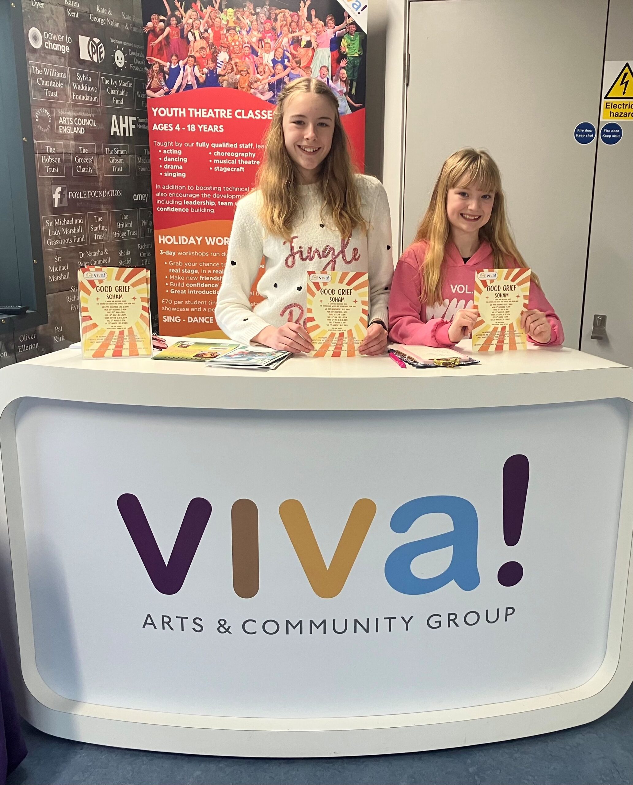 The Viva Theatre is situated at the very end of Spencer Drove on the right where you'll see the building entrance as you turn in, continue past it if you need to park, there is plenty of space beyond. As you enter through the double glass doors, you'll see the reception desk in front of you where there will often be someone to greet you on arrival but otherwise turn right again and through the next set of doors you'll find both the staircase and a wheelchair accessible lift. The old mill building has undergone an amazing regeneration programme recently, you may wish to take a moment to look at the displays in the hallway illustrating some of the building's interesting past.